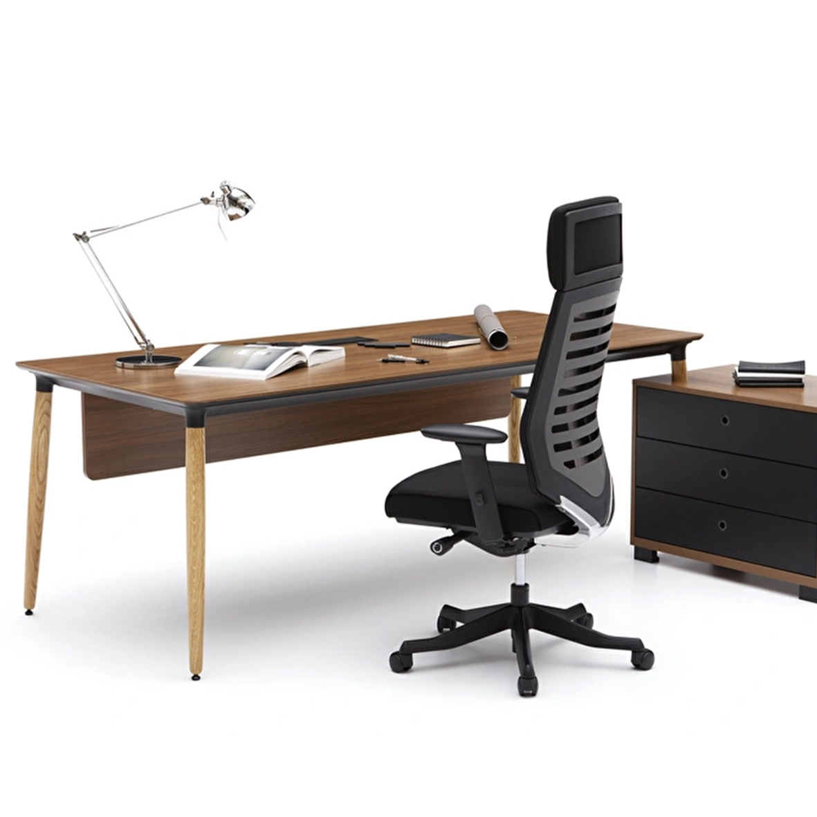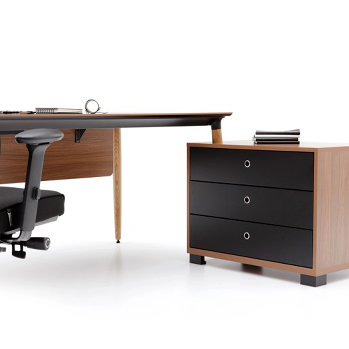 The Era Executive Desk elegantly reflects the prestige of senior executives while offering a customizable workspace through its modern storage units and modular components. Combining functionality with refined aesthetics, it ensures both style and productivity.