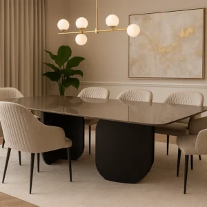 A stunning fusion of contemporary artistry and modern engineering, the LARNA Dining Table is designed to be the centerpiece of any dining space. Its bold architectural form and refined materials create a timeless statement that balances sophistication with everyday functionality.