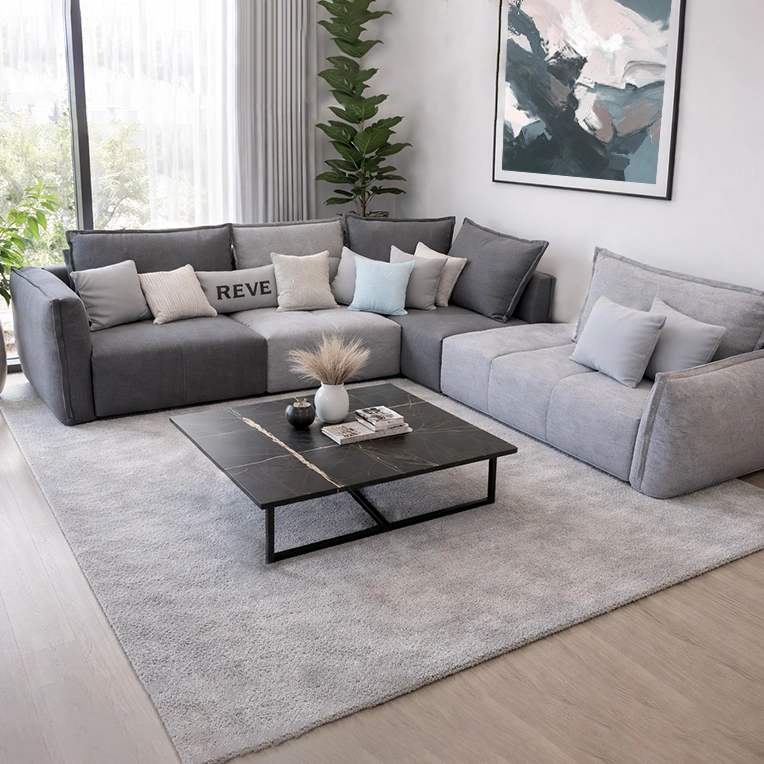 This contemporary modular comfortable seating, enveloping modern look, designed to anchor modern living spaces with understated elegance.