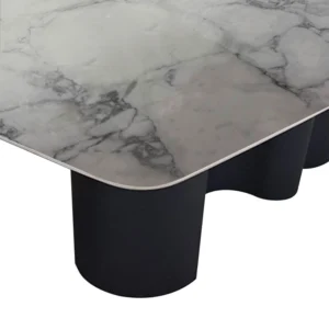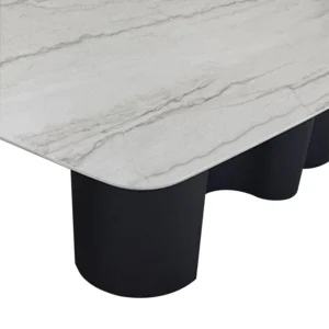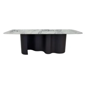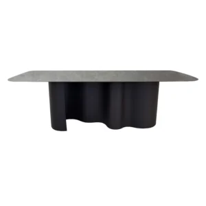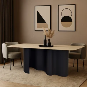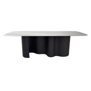 Its striking silhouette, defined by a trio of curved base columns, creates a sense of rhythm and balance—making it a true centerpiece for contemporary dining spaces. The soft stone-look tabletop adds a refined contrast, blending art and function seamlessly.