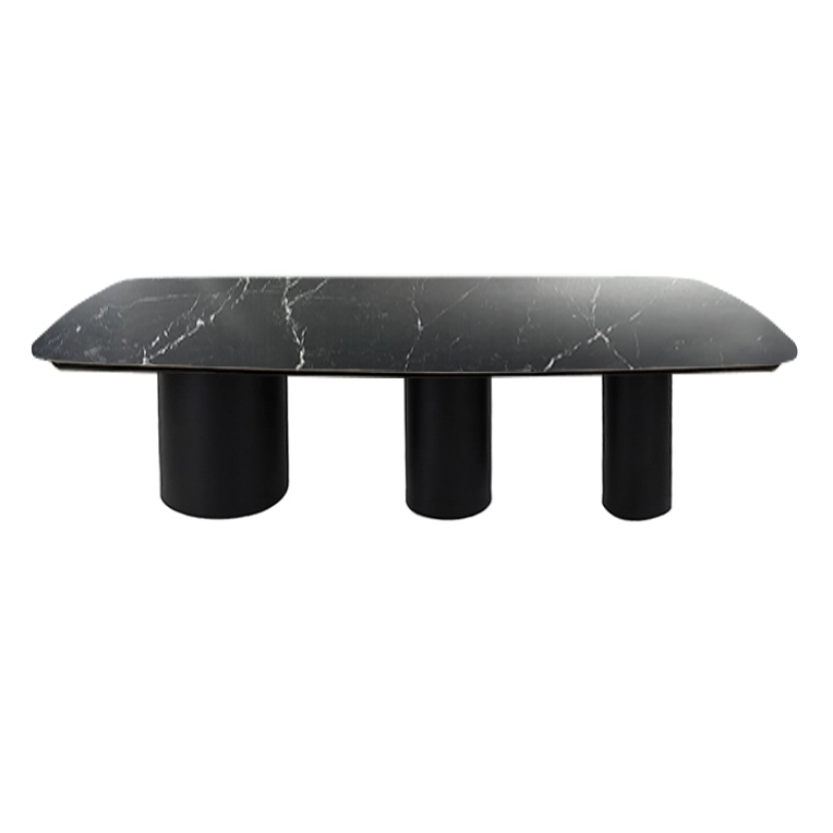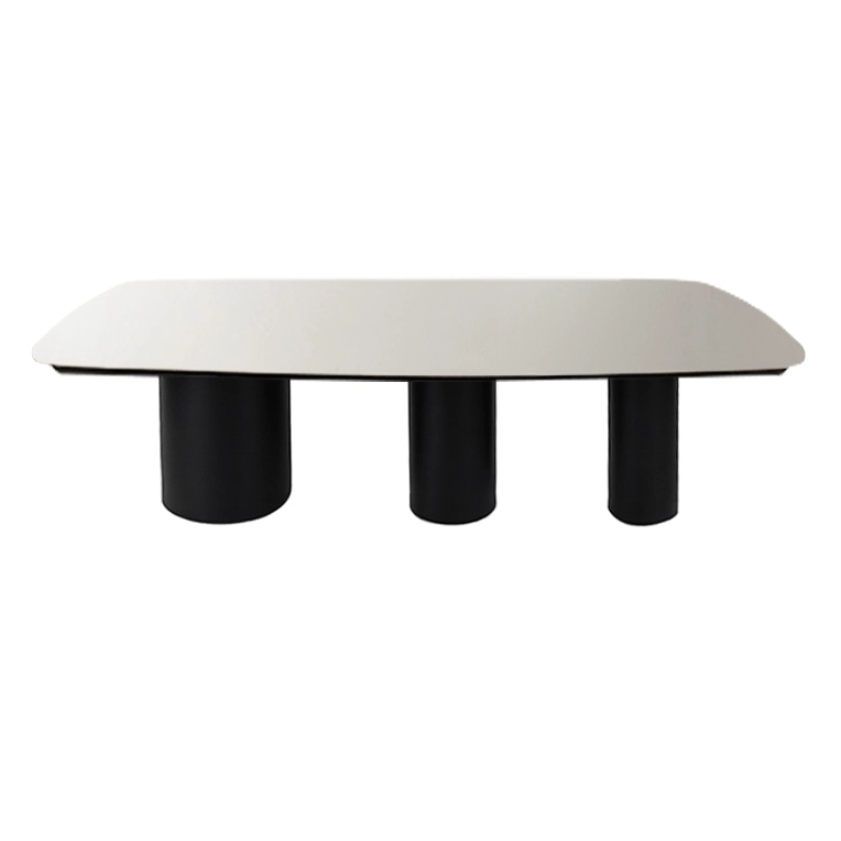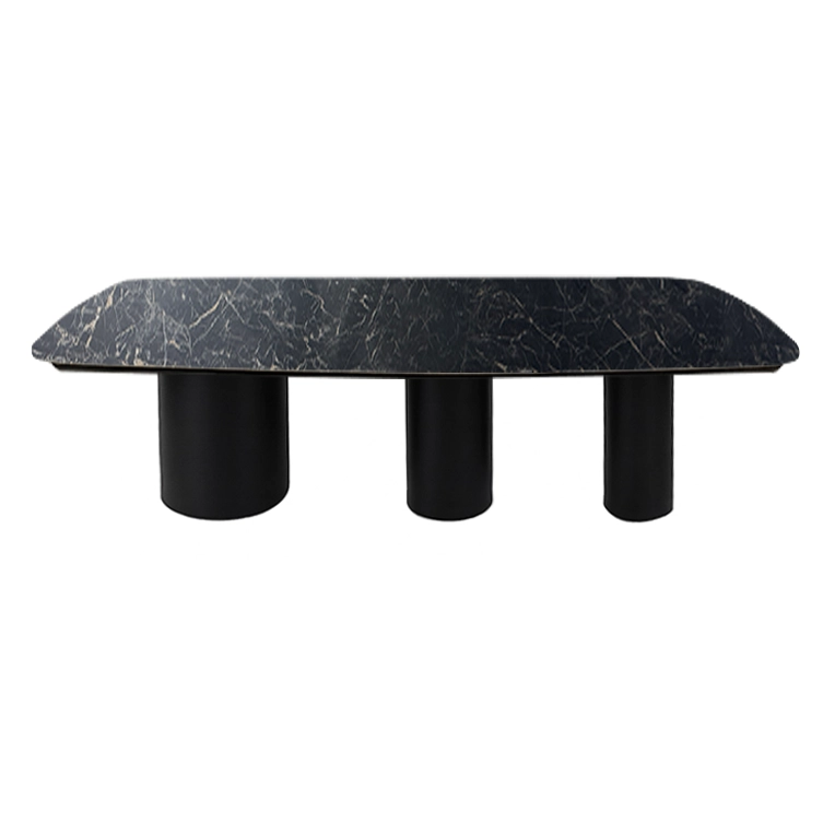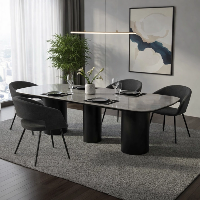 • Statement Pedestal Base – Supported by three sturdy cylindrical black bases, the design ensures stability while adding a bold architectural touch.