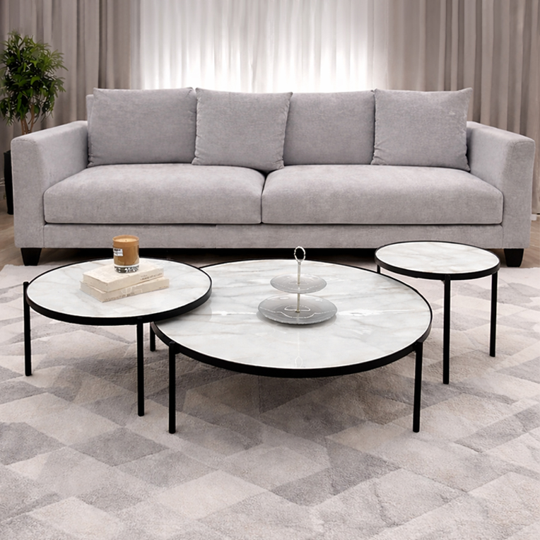 The Paros Coffee Table Set embodies modern minimalism with refined design, creating a layered composition that adds depth and dimension to any living space.