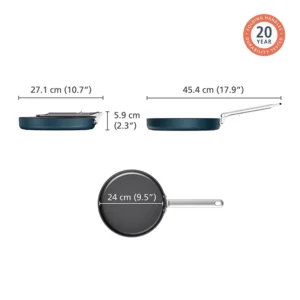 24cm frying pan ideal for frying, searing and sauteing.Dishwasher safe but hand washing recommended to prolong performance.